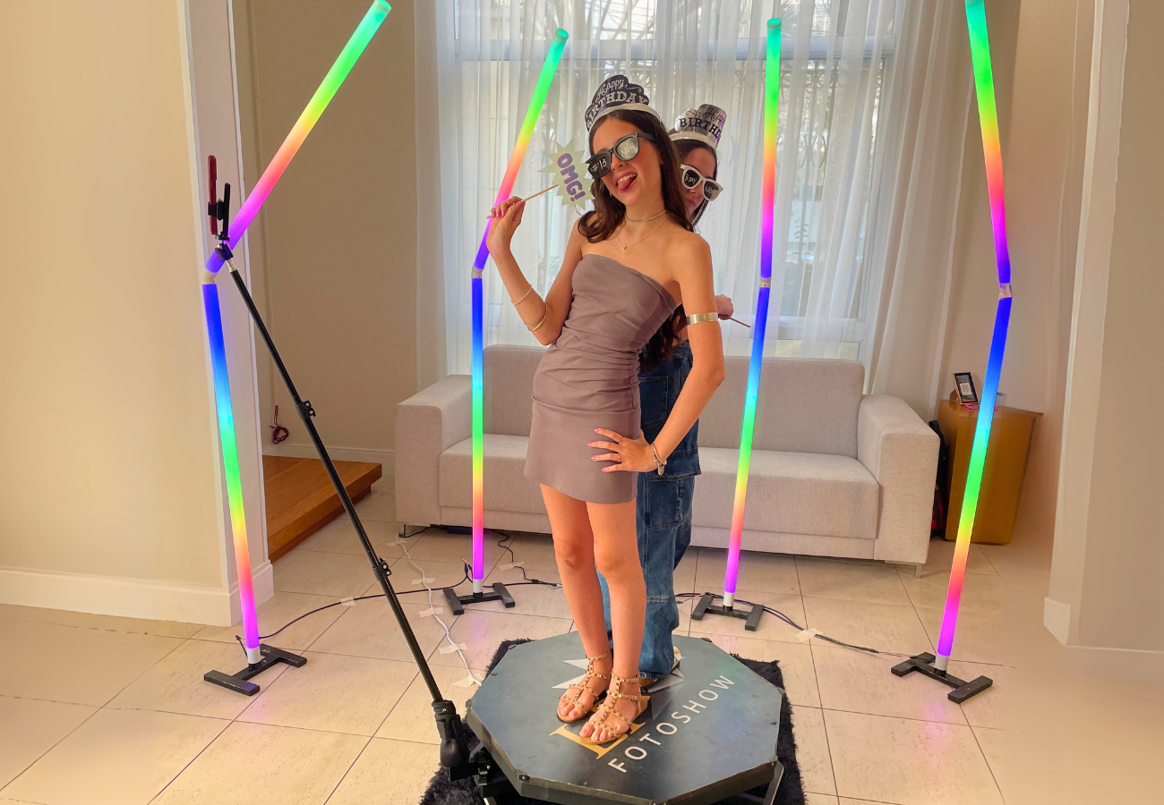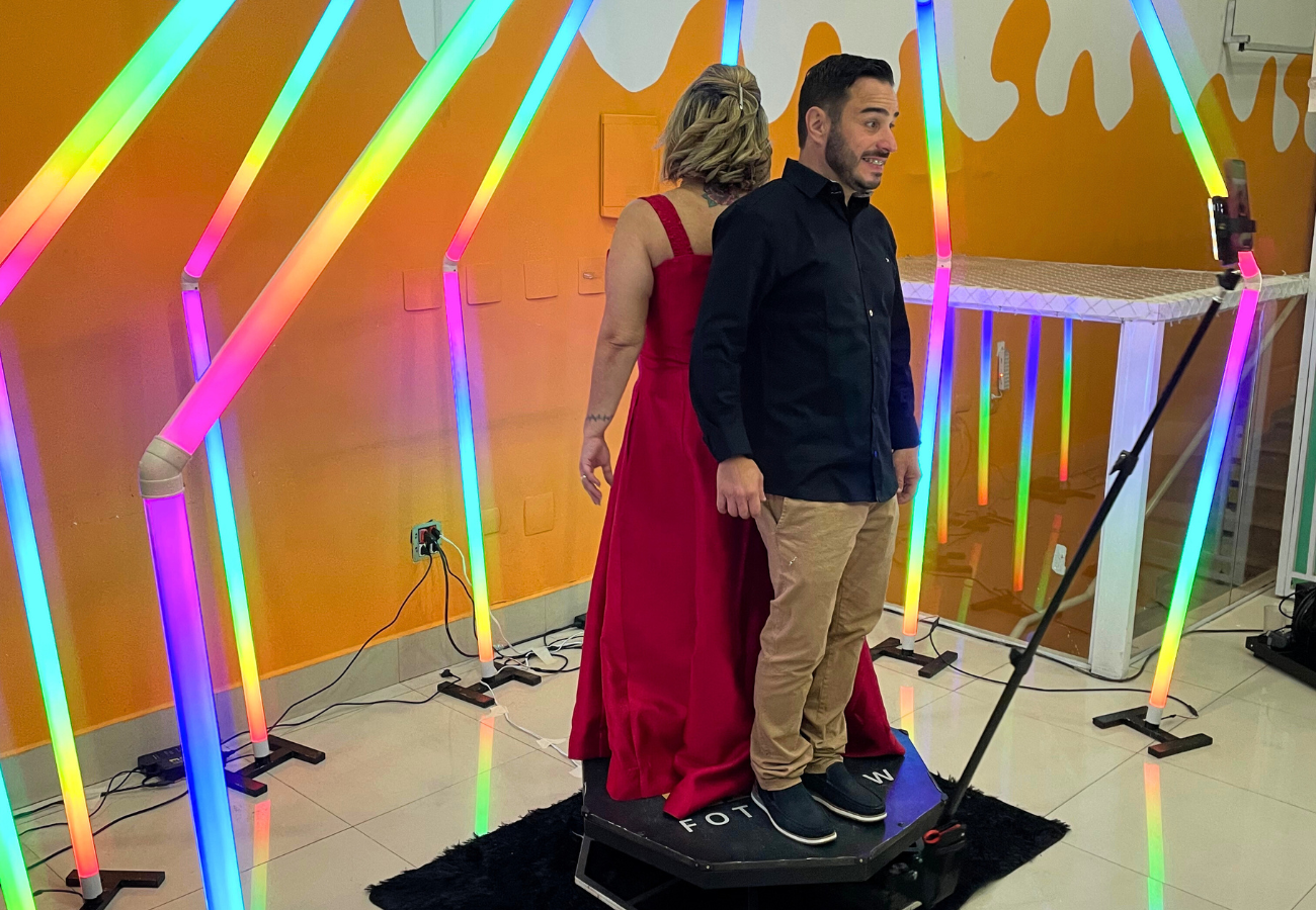 A atração mais desejada do momento! Nossa plataforma 360º registra vídeos envolventes em todos os ângulos, com trilha sonora, efeitos especiais e compartilhamento instantâneo. Uma experiência inovadora e inesquecível para surpreender convidados e marcar seu evento.